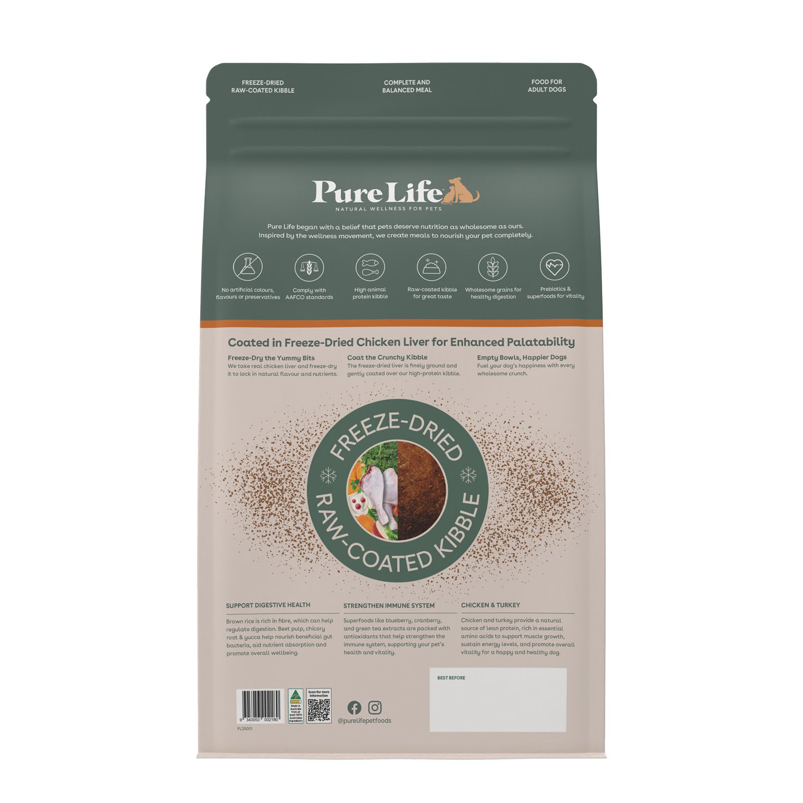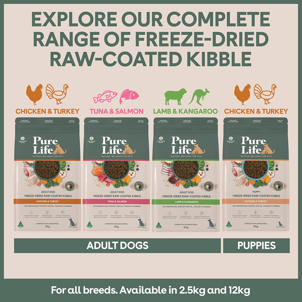 - Unique kibble and freeze dried blend.