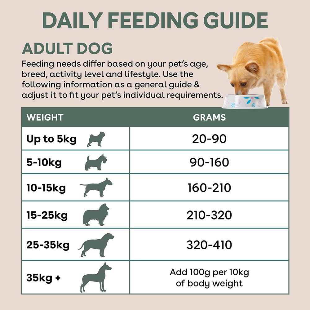 | Dog Weight | Grams/Day | Cups/Day |